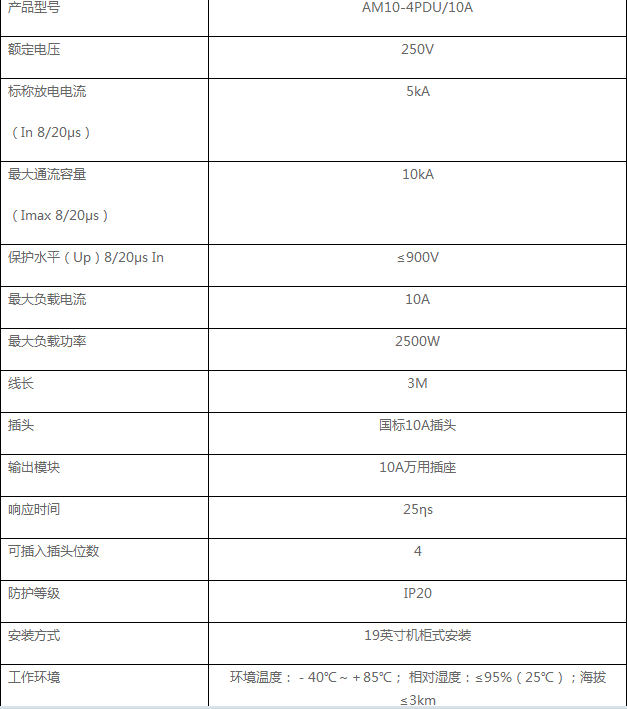 产品:4位10A机柜式PDU防雷插座--AM10-4PDU/10A